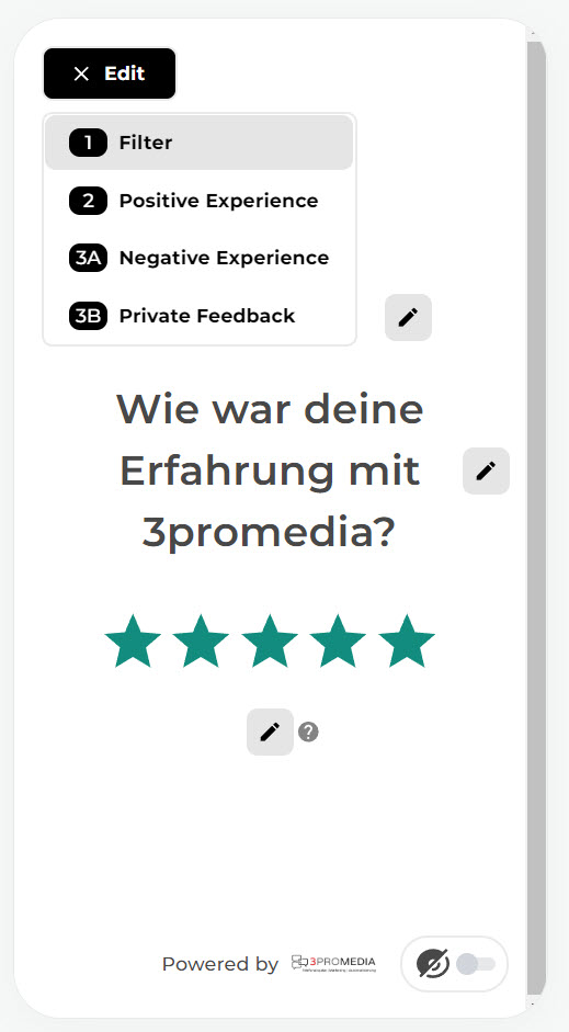 Leiten Sie zufriedene Kunden zu Google weiter, unzufriedene zu einer privaten Feedback-Funktion – so fördern Sie positive Bewertungen bei gleichzeitiger Einhaltung der Vorschriften.