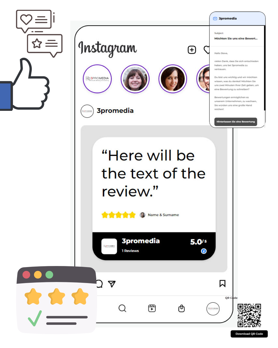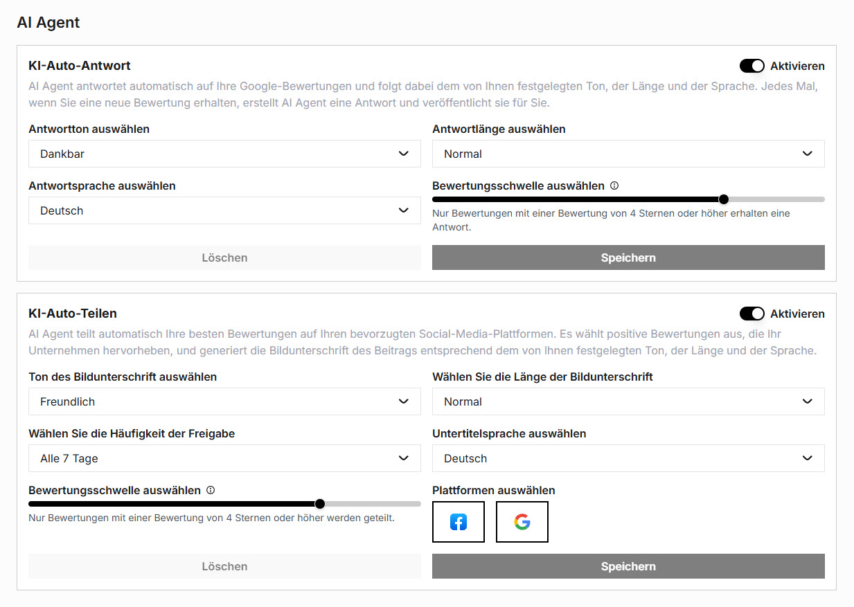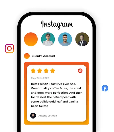 Automatische Veröffentlichung von Top-Rezensionen auf Facebook und Instagram, um die Social-Media-Profile aktiv und mit positiven Inhalten gefüllt zu halten.