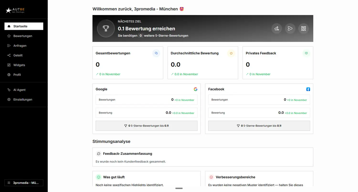 AutBe ist eine vielseitige Bewertungsmanagementplattform, die sich an ein breites Spektrum von Unternehmen richtet und Ihnen dabei hilft, Ihre Online-Reputation zu verbessern und positive Bewertungen zu generieren. Mit seinen umfassenden Funktionen ermöglicht AutBe Unternehmen aus verschiedenen Branchen, mehr Kunden zu gewinnen, Vertrauen aufzubauen und im heutigen wettbewerbsintensiven Markt erfolgreich zu sein.